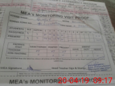 | Attendance Register | Head Teacher | MEA with School | Visit Proof |