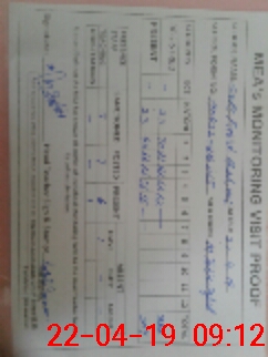 | Monitoring Date: 22-04-2019 | Start Time: 22-04-2019 08:16 AM | End Time: 22-04-2019 09:20 AM | Name of MEA: M.Ta**** Iq**** (S**** | |