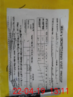 | Monitoring Date: 22-04-2019 | Start Time: 22-04-2019 12:18 PM | End Time: 22-04-2019 01:14 PM | Name of MEA: Am**** Mu**** Kh**** | |