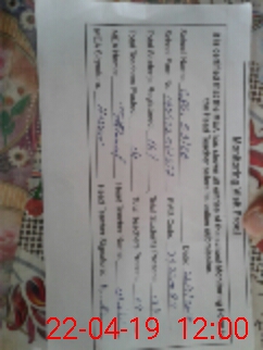 | Name: TA**** WA**** Designation: (School Headmaster's/Headmistress's) PST Phone/Cell Number: 03**** |