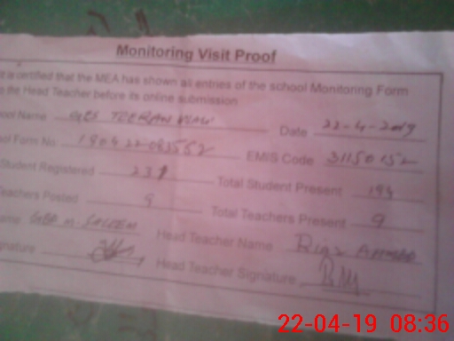 | Certified that this School was Inspected by the Undersigned MEA/DMO Today and the Information Stated Above is as Per Record. | |||||
