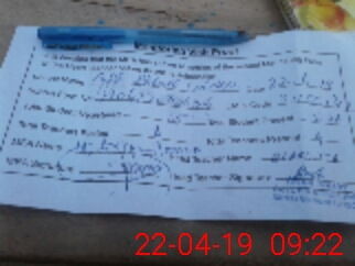 | Monitoring Date: 22-04-2019 | Start Time: 22-04-2019 08:27 AM | End Time: 22-04-2019 09:23 AM | Name of MEA: M.**** HA**** BN**** | |