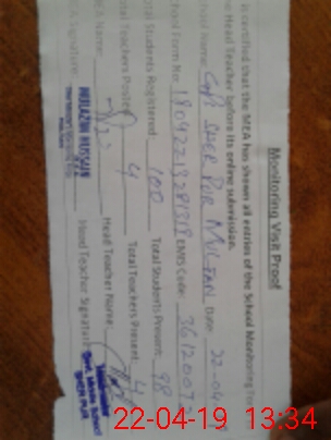 | Attendance Register | Head Teacher | MEA with School | Visit Proof |