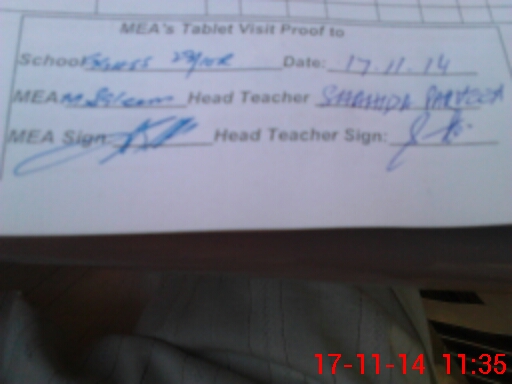 | Attendance Register | Head Teacher | MEA with School | Visit Proof |