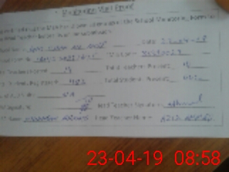 | Monitoring Date: 23-04-2019 | Start Time: 23-04-2019 08:19 AM | End Time: 23-04-2019 09:02 AM | Name of MEA: Mu**** Ah**** | |