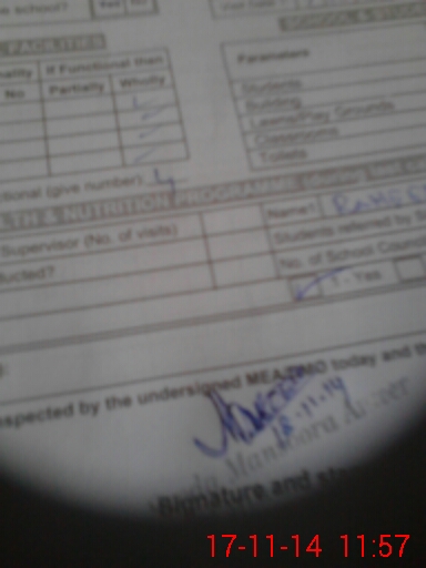 | School Visited by School Health & Nutrition Supervisor (No. of Visits) | Name1: | Raheela | Name2: | ||
