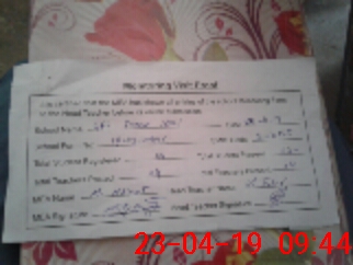 | Attendance Register | Head Teacher | MEA with School | Visit Proof |