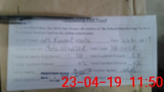 | Monitoring Date: 23-04-2019 | Start Time: 23-04-2019 11:38 AM | End Time: 23-04-2019 11:56 AM | Name of MEA: MA**** ULHA**** KH**** | |