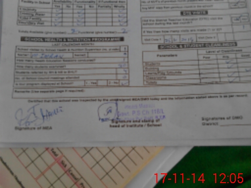 | School Visited by School Health & Nutrition Supervisor (No. of Visits) | 1 | Name1: | M Imran | Name2: | Nil |