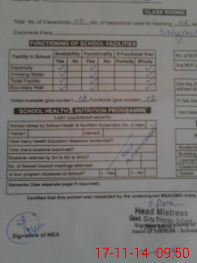 | Certified that this School was Inspected by the Undersigned MEA/DMO Today and the Information Stated Above is as Per Record. | |||||