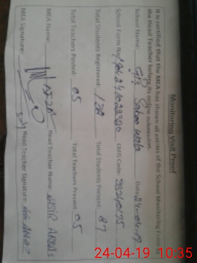 | Attendance Register | Head Teacher | MEA with School | Visit Proof |