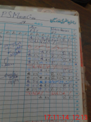 | CNIC | Full Name | Designation | R/C | Absence During Last Calender Month |