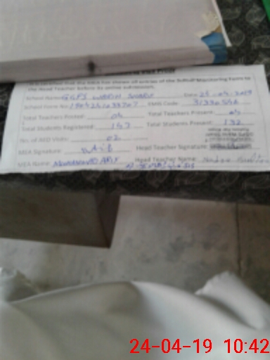 | Attendance Register | Head Teacher | MEA with School | Visit Proof |