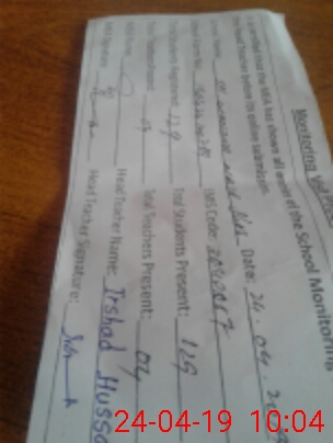 | Attendance Register | Head Teacher | MEA with School | Visit Proof |