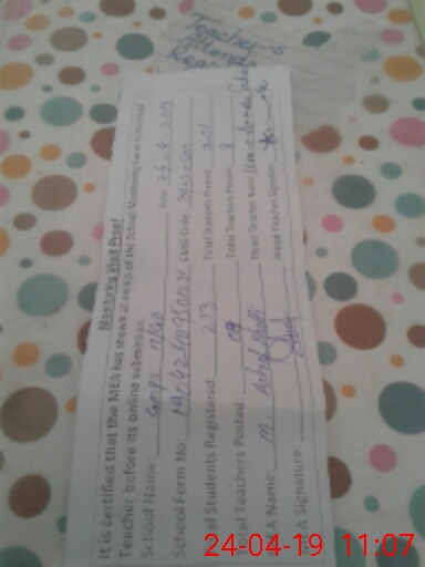 | Certified that this School was Inspected by the Undersigned MEA/DMO Today and the Information Stated Above is as Per Record. | |||||