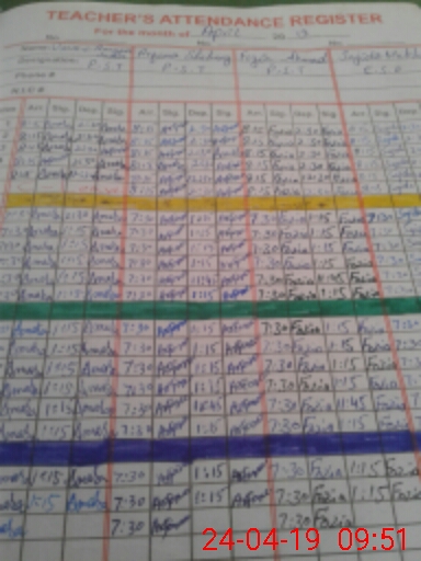 | Total no. of Classrooms: 7 No. of Classrooms Used for Teaching: 6 No. of Classrooms Storing Old Furniture, FTBs, etc: 0Comments if Any: NSB and FTF record not maintained |