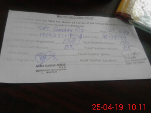 | EMIS Code: 36130134 | Name of School: GPS SADDAR PUR MULTAN MOUZA SADDAR PUR MULTAN | |||