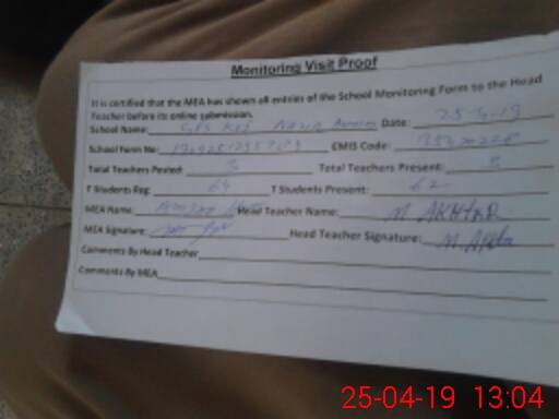 | Attendance Register | Head Teacher | MEA with School | Visit Proof |