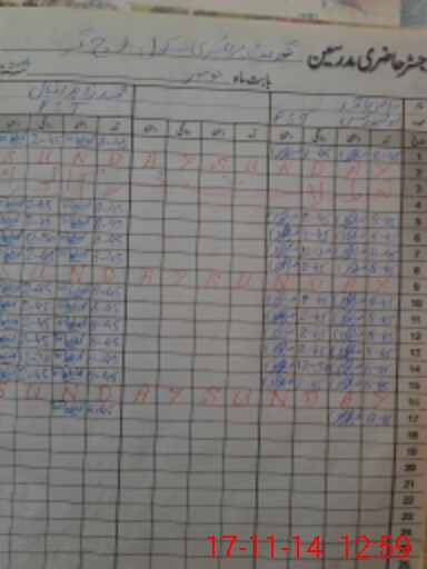 | CNIC | Full Name | Designation | R/C | Absence During Last Calender Month |