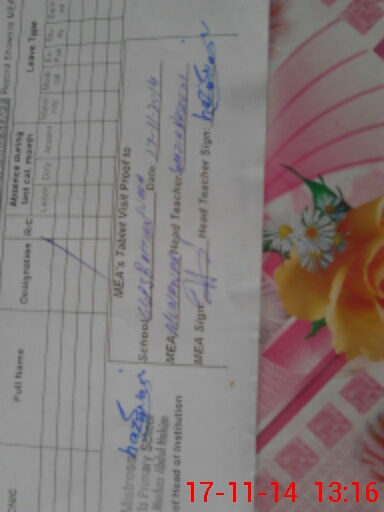 | Attendance Register | Head Teacher | MEA with School | Visit Proof |