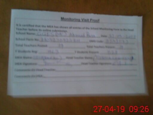 | Certified that this School was Inspected by the Undersigned MEA/DMO Today and the Information Stated Above is as Per Record. | |||||