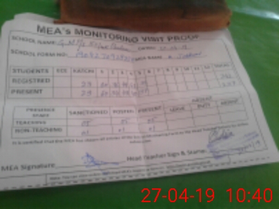 | Attendance Register | Head Teacher | MEA with School | Visit Proof |