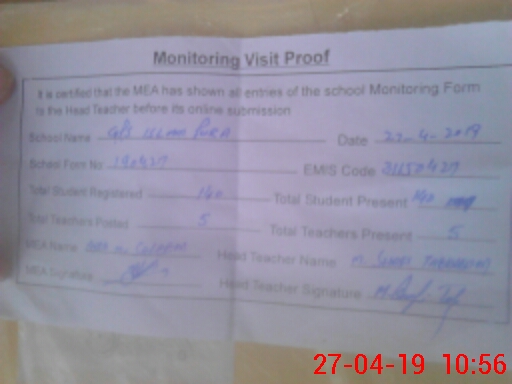 | EMIS Code: 31150427 | Name of School: GPS ISLAM PURA | |||