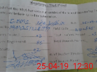 | Monitoring Date: 25-04-2019 | Start Time: 25-04-2019 12:10 PM | End Time: 25-04-2019 12:31 PM | Name of MEA: Za**** Ah**** | |
