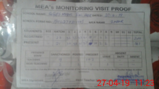 | Certified that this School was Inspected by the Undersigned MEA/DMO Today and the Information Stated Above is as Per Record. | |||||