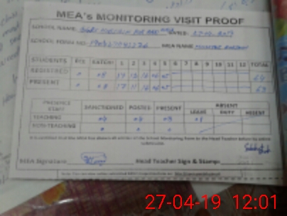 | Attendance Register | Head Teacher | MEA with School | Visit Proof |