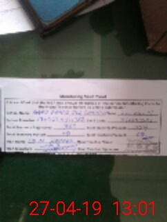 | Monitoring Date: 27-04-2019 | Start Time: 27-04-2019 11:51 AM | End Time: 27-04-2019 01:02 PM | Name of MEA: MU**** AS**** | |