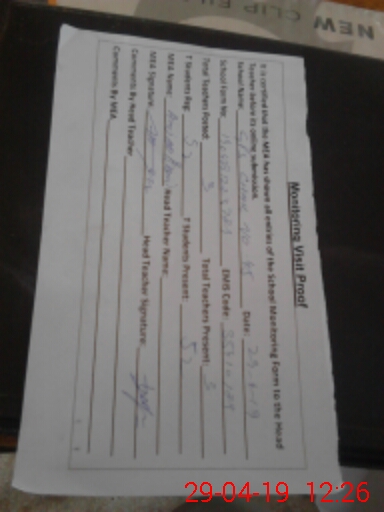| Attendance Register | Head Teacher | MEA with School | Visit Proof |