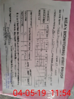 | Monitoring Date: 04-05-2019 | Start Time: 04-05-2019 10:23 AM | End Time: 04-05-2019 11:56 AM | Name of MEA: Am**** Mu**** Kh**** | |
