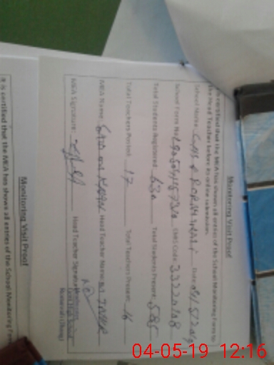 | Attendance Register | Head Teacher | MEA with School | Visit Proof |