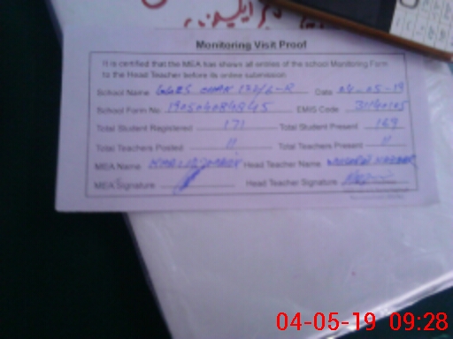 | Attendance Register | Head Teacher | MEA with School | Visit Proof |