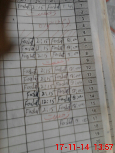 | CNIC | Full Name | Designation | R/C | Absence During Last Calender Month |