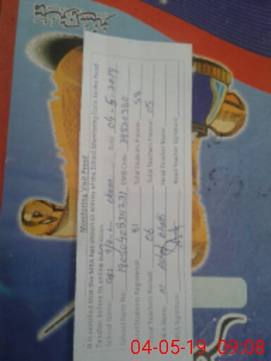 | Attendance Register | Head Teacher | MEA with School | Visit Proof |