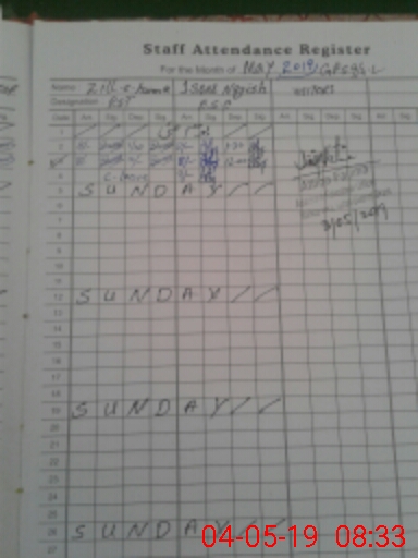 | Total no. of Classrooms: 5 No. of Classrooms Used for Teaching: 4 No. of Classrooms Storing Old Furniture, FTBs, etc: 0Comments if Any: One teacher absent without sanction leave and refuge to sign on visit proof |