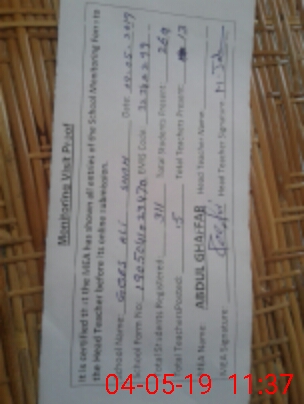 | Attendance Register | Head Teacher | MEA with School | Visit Proof |
