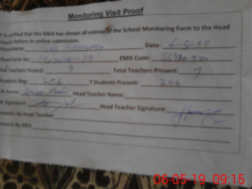 | Attendance Register | Head Teacher | MEA with School | Visit Proof |