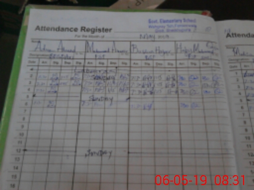 | 00**** | MU**** SH**** | NAIB QASID | Regular | 2 | 0 | 0 | 0 | 0 | 0 | 0 | 0 | 2 | Casual |