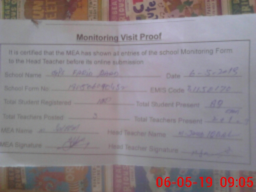 | EMIS Code: 31150170 | Name of School: GPS FARID ABAD | |||