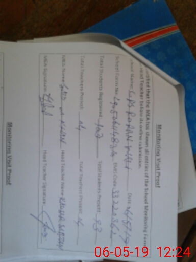 | Certified that this School was Inspected by the Undersigned MEA/DMO Today and the Information Stated Above is as Per Record. | |||||