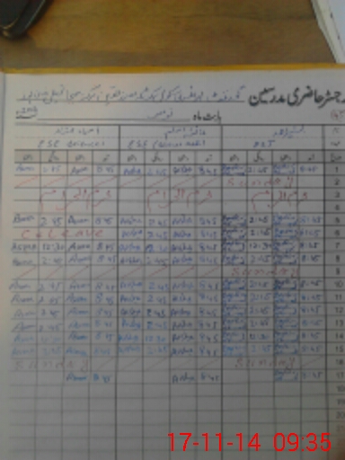 | CNIC | Full Name | Designation | R/C | Absence During Last Calender Month |