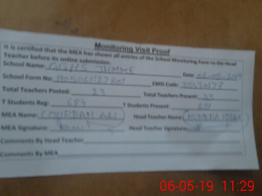 | Attendance Register | Head Teacher | MEA with School | Visit Proof |