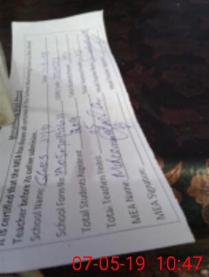 | Certified that this School was Inspected by the Undersigned MEA/DMO Today and the Information Stated Above is as Per Record. | |||||