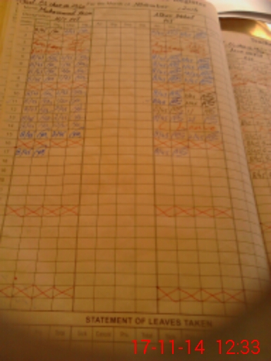 | CNIC | Full Name | Designation | R/C | Absence During Last Calender Month |