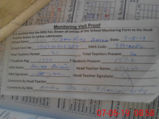 | Attendance Register | Head Teacher | MEA with School | Visit Proof |