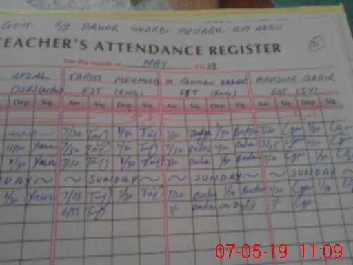 | Remarks (Use Separate Page if Required): Teacher is markrd on official duty of books distribution his authorization letter of duty is for 2018 not for 2019 I have taken the picture of letter and sent to CEO SB | |||||