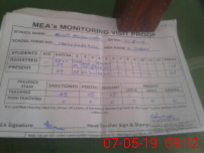 | Attendance Register | Head Teacher | MEA with School | Visit Proof |